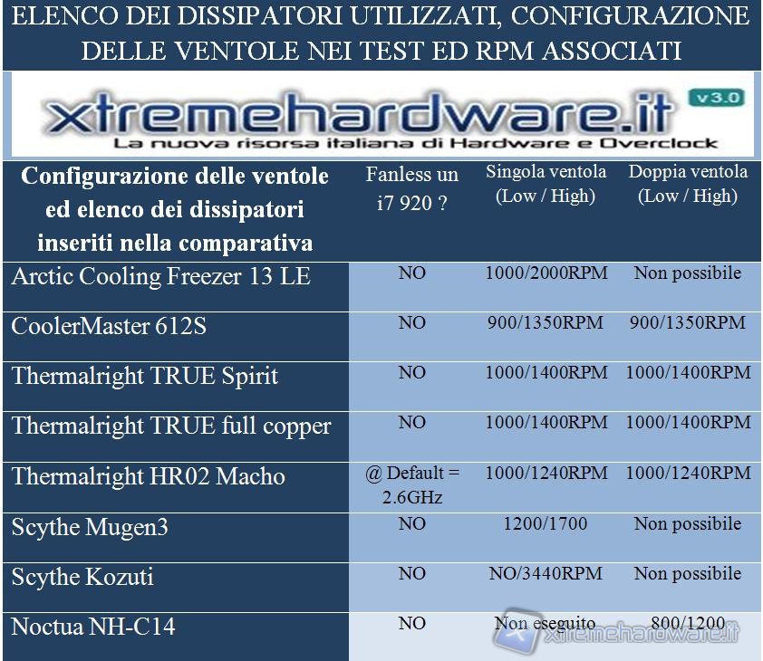 Sarà confrontato, con i seguenti dissipatori e nelle seguenti configurazioni di ventole: